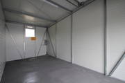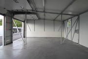 Der Mietgegenstand „Kleinhalle“ besteht jeweils aus einem Betonboden, einer Stahlformrohrkonstruktion mit Wänden und einem Dach aus wärmegedämmtem Sandwichpaneelen mit jeweils einem Sektionaltor, einem Beleuchtungskörper und mind. 4 Stk. 230V Schuko-Steckdosen und 2 Stk. 400V CEE-Dosen.
